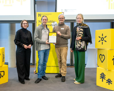 BNE-Zertifikat ausgezeichnet! Wir erhielten die Ehrung von Umweltministerin Thekla Walker und Staatssekretärin Sandra Boser. Die Auszeichnung bestärkt uns darin, unsere mobilen