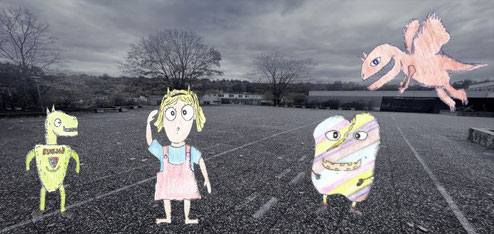Das Farbenmonster braucht dringend eure Hilfe. Es wohnt auf dem Pausenhof in Ispringen und da es dort so grau und farblos ist verblasst es immer mehr. Unterstützt Lina und ihre Freunde